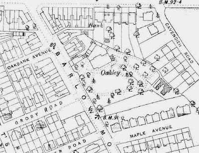 Oak Bank was a substantial building standing in its own grounds, close to the modern junction of Barlow Moor and Wilbraham roads.