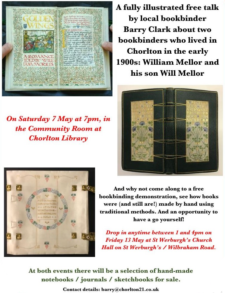 Now I am looking forward to Barry Clark's free talk on William and Will Mellor, who lived in Chorlton, were active in Manchester’s labour movement and were bookbinders by profession.